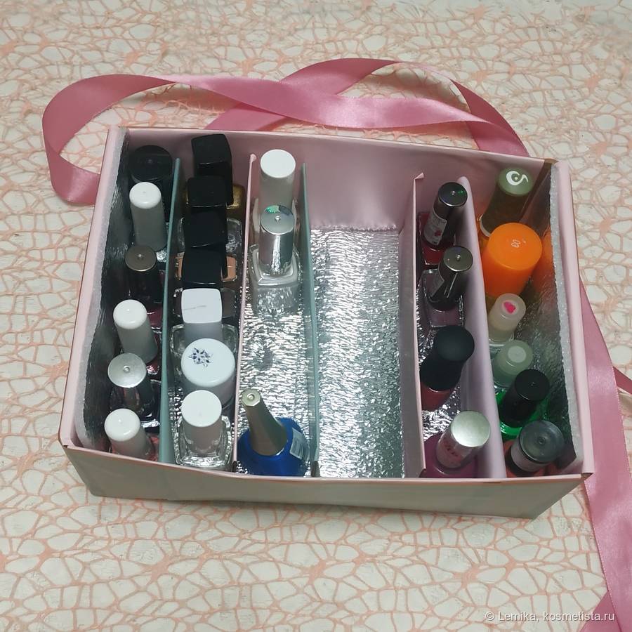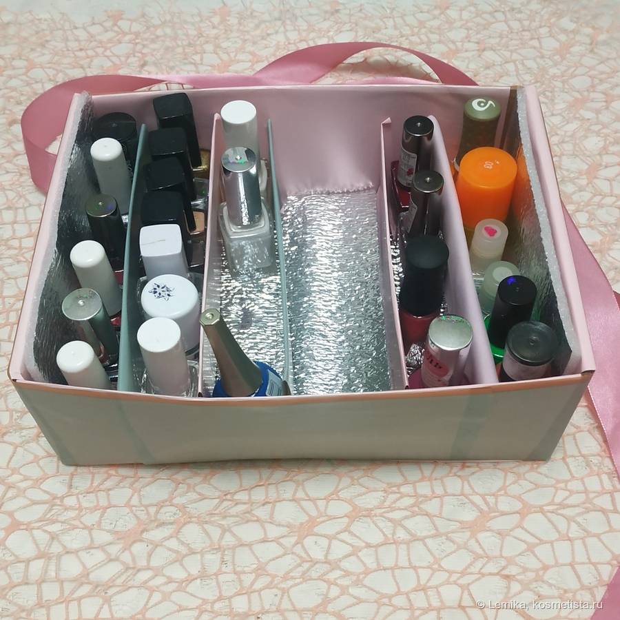 Для мастеров маникюра, которые работают на выезде, будет удобно завести специальный переносной бокс или чемоданчик, в котором поместятся не только лаки, но и щипцы, пилки и другие необходимые аксессуары.