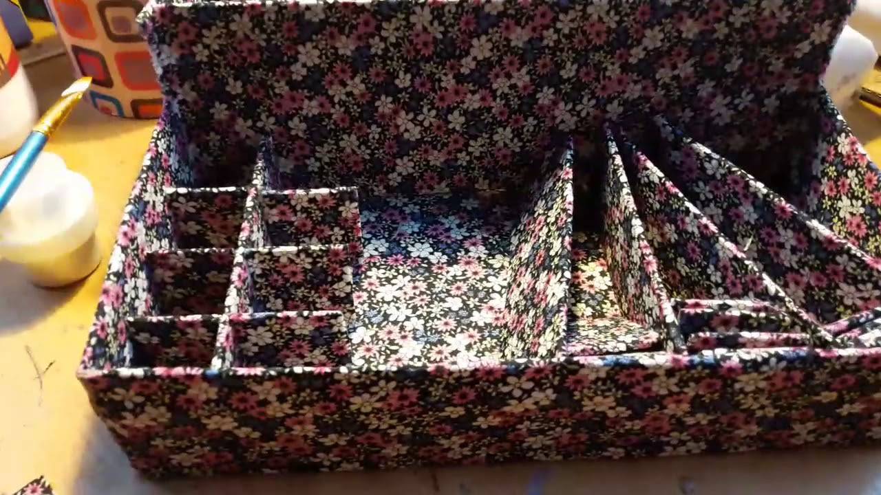 Оформить такой органайзер можно краской, лаком или самоклейкой. В нем можно разместить и косметику взрослых модниц.