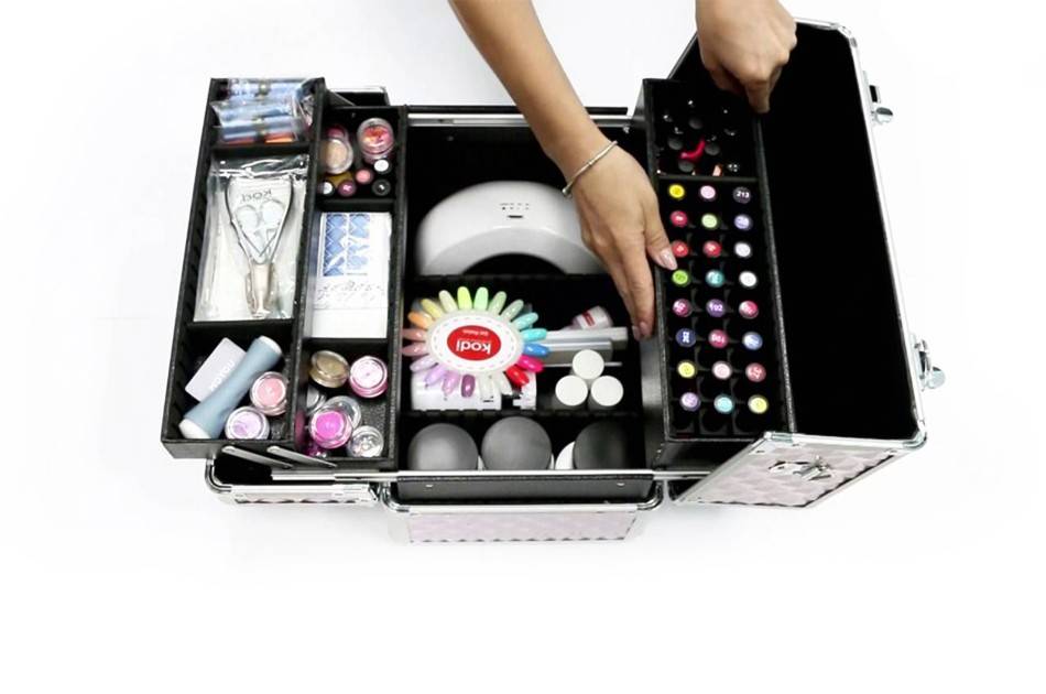 Как правило, мастера маникюра подбирают кейс под свою модель ( или ). Поэтому чемоданчик должен иметь минимум 5 отделений: под технику и маленькие – под различные декоративные материалы, покрытия ( , ) и .