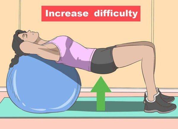 Гиперэкстензия на фитболе. Для более устойчивого положения, расставьте ноги чуть шире плеч. Используйте нескользкие поверхности, чтобы ноги не проскользнули назад. Можно упереться пятками в стенку.