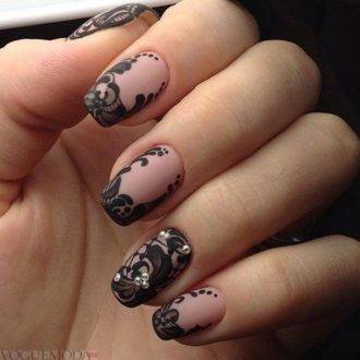 Черный маникюр уже несколько лет не выходит из моды. Он актуален всегда. Черный маникюр может быть выполнен в самых разных стилях: классика, готика, гранж и другие. Черный лунный маникюр очень популярен среди молодых девушек. На черный гель-лак лучше всего ложиться втирка, с помощью которой можно создать красивое и модное зеркальное покрытие. Черный сочетается с любыми оттенками лаков и декором для ногтей, будь то стразы, фольга, мозаика и так далее, поэтому на его основе можно придумать множество идей дизайна.