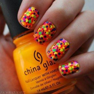 Создать необычный, но до боли простой маникюр поможет техника рисования точками. Делают такой маникюр как лаками разных цветов, так и гель-лаками, шеллаком, акриловыми красками. Из инструментов понадобится дотс. Альтернатива – зубочистки, иголка, наконечник от шариковой ручки и т.д.