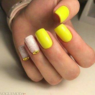 Все современные тенденции нейл-дизайна, актуальные для маникюра обычным покрытием, будут приемлемы и для гель-лака. Рисунки, придуманные дизайнерами весьма разнообразны и подойдут для различных модных образов. В тренде художественные росписи, навеянные цветочными мотивами, национальными орнаментами, графическими фигурами, абстракцией, узорчатыми загогулинами и кружевными вуалями.