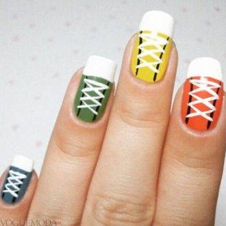 С помощью лака можно выполнить однотонный или красочный маникюр. Для дизайна используют бульонки — мелкие металлические бусины, стразы, гель-краску, фольгу, наклейки, узорные полоски, блестки, голографическую или акриловую пудру. Финишное покрытие закрепляет цветное, защищает его от сколов и трещин, обеспечивая долговечность.