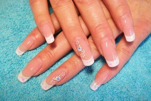 Особо популярен в исполнении биолака французский маникюр. «Улыбка» ногтя получается ярко-белой, что не так просто достичь, применяя технологии обычного маникюра.