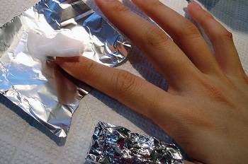 Для этого достаточно обернуть каждый ноготок смоченным в растворе ватным диском и фольгой, и немного выждать.