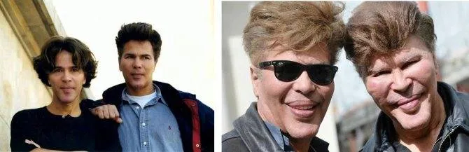 Став иконами своего времени, братья мечтали остаться на пике славы навсегда. Они никак не хотели стареть, особенно Гришка. В погоне за молодостью, которая ускользнула от них в начале 90-х годов, братья решили сделать свою первую пластическую операцию и вместе легли на операционный стол. После круговой подтяжки и установки силиконовых имплантатов в огромный от природы подбородок наши герои выглядят не лучше, о чем свидетельствуют фотографии братьев Богдановых «до и после».