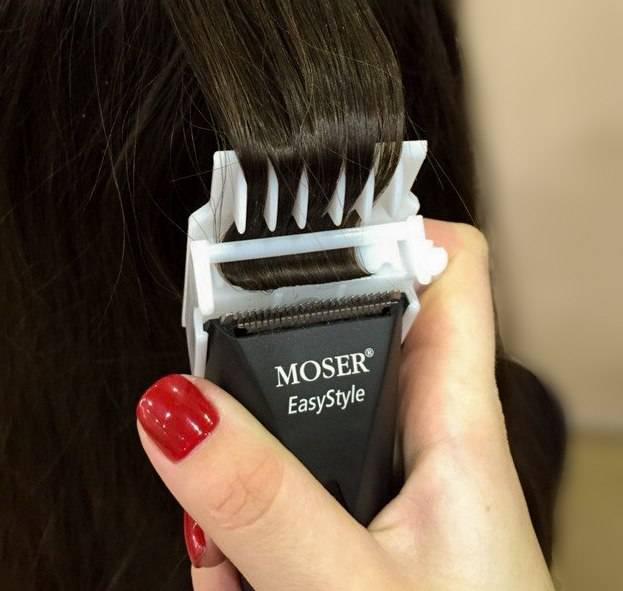 - идеально ровный срез волоса, который можно получить только с помощью машинки для волос;