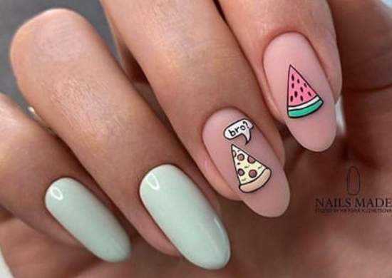 Яркие картинки на ноготках привлекают к себе повышенное внимание окружающих, так что такой модный летний маникюр 2021 года подойдет не всем. Беззаботные старшеклассницы, студентки и девушки, чья профессия не обязывает выбирать преимущественно бежевый маникюр, могут смело позволить себе превратить ручки в объект искусства