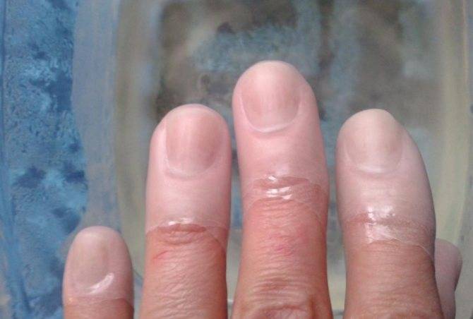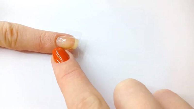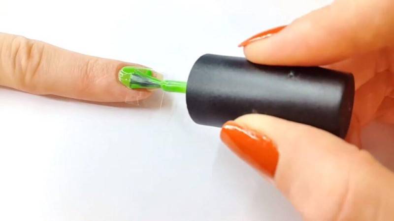 Незакрытую часть ногтевой пластины окрашивают зелёным лаком, плёнку убирают только после его частичного подсыхания.