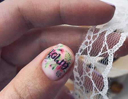 Еще одно модное решение – надписи. Для их создания, как правило, используют черную гель-краску и тонкую кисть. Надпись можно расположить сверху фонового рисунка, дополнить блестками, «островками» из переводной фольги, линиями разной толщины.