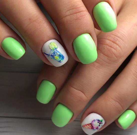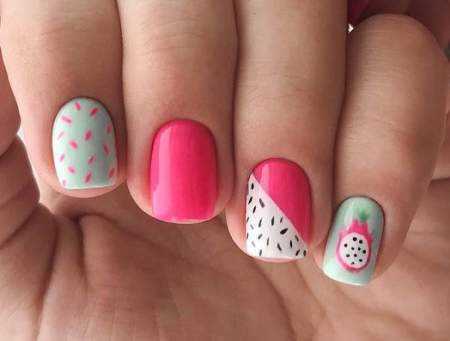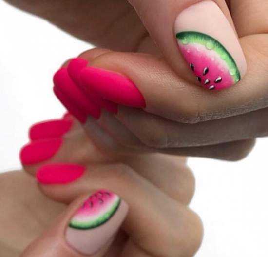 Любительницам лаконичных форм и простых дизайнов в геометрическом стиле в жаркие месяцы стоит добавить немного яркости на ногти. Бело-черные контрасты стоит оставить до холодного сезона, а сейчас попробуйте выполнить маникюр в оттенках лета – сочных и свежих.