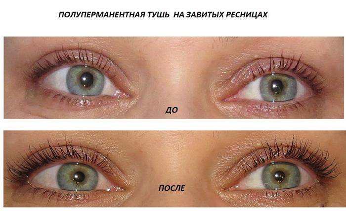 Наконец, процедура понравится тем, кто раньше часто, без перерывов, наращивал ресницы. Процедура наращивания ресниц всё же портит собственные волоски, которые постепенно слабеют от клеящего состава и веса накладываемых на них материалов. Полуперманентная тушь не травмирует ресницы, а визуальный эффект при этом – ничуть не хуже, чем после наращивания.