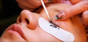 Сперва воздействию поддаются верхние реснички, для этого на нижнее веко накладывается специальная защитная подушечка, состоящая из гидрогеля. Подушка накладывается таким образом, чтобы волоски, находящиеся на нижнем веке, были полностью спрятаны. Теперь на реснички накладывается слой праймера – это средство позволяющее удалить с поверхности ресниц пыль, оставшиеся косметические компоненты и пр.