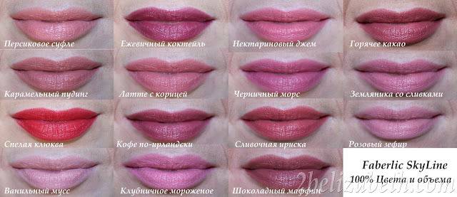 Faberlic SkyLine Губная помада 100% цвета и объема в 15 оттенках / swatches / review
