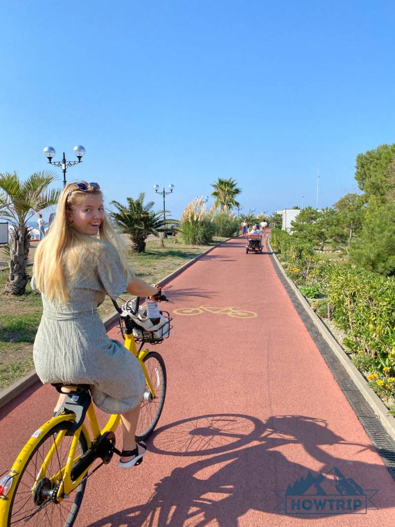 Бухта хороша тем, что здесь можно прогуливаться по набережной или брать в аренду велосипеды/самокаты, дорога проходит через все побережье, есть специально выделенная зона для велосипедов. Мы пользуемся приложением Urent, но здесь много и других.