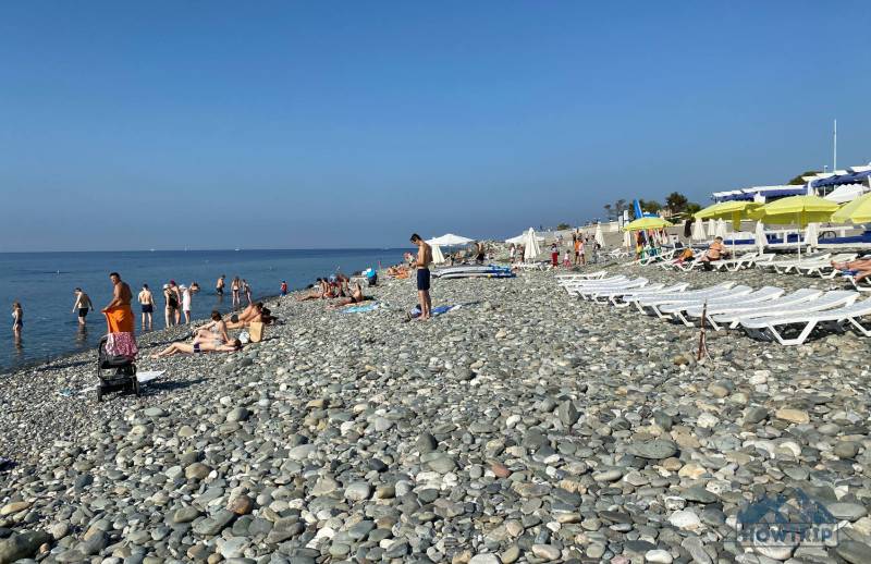 Остановились мы в районе Адлерского порта, но вот доехали до конца Нижнеимеретинской бухты (ближе к границе с Абхазией), и я удивился количеству отдыхающих под конец октября — о-о-очень много людей. Вот смотрите фото, сделано 30 числа.