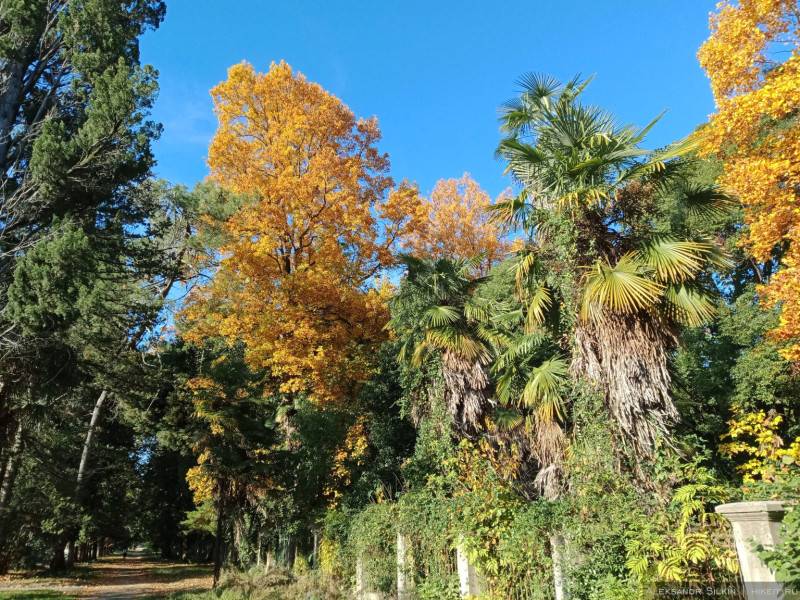 Где, как ни в Абхазии, в ноябре можно увидеть микс бурной тропической зелени с привычными в средних широтах пожелтевшими листьями.