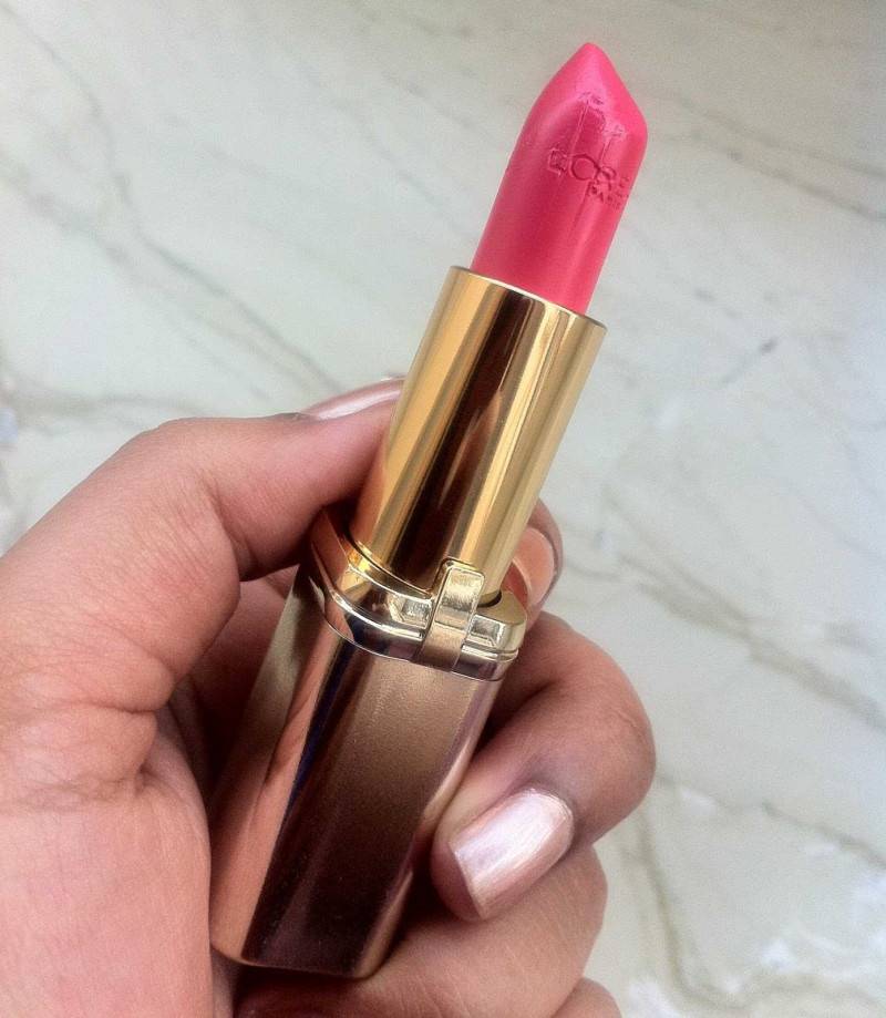 Это еще один сладкий оттенок от L’Oreal Paris Colour Riche Lipstick. Это имеет легкий красноватый оттенок. Так что если вам нравится красные помады, то это правильный выбор для вас. Это не темно-красный цвет, а просто небольшой оттенок красного, смешанный с розоватыми оттенками.