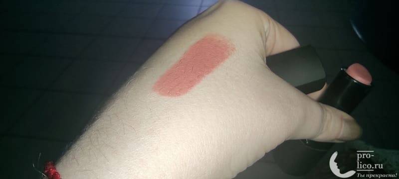 Все помады этой серии заявлены как стойкие. И «Капучино» не является исключением. Цветовой пигмент, хоть и приглушенный, остается на губах после легкого перекуса. Сама помада матовая, но, в отличие от других с подобным эффектом, отлично скрывает все шелушения. Несмотря на то что карандаш достаточно тонкий, он не ломается. Но твердый стик – это не значит жесткое нанесение. Текстура у средства мягкая, отчего оттенок ложится ровно. Поэтому помада производит хорошее впечатление.