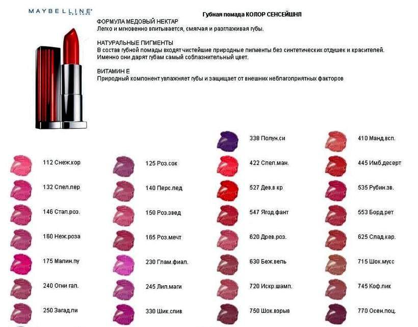 Оттенки помады Color Sensational, Maybelline