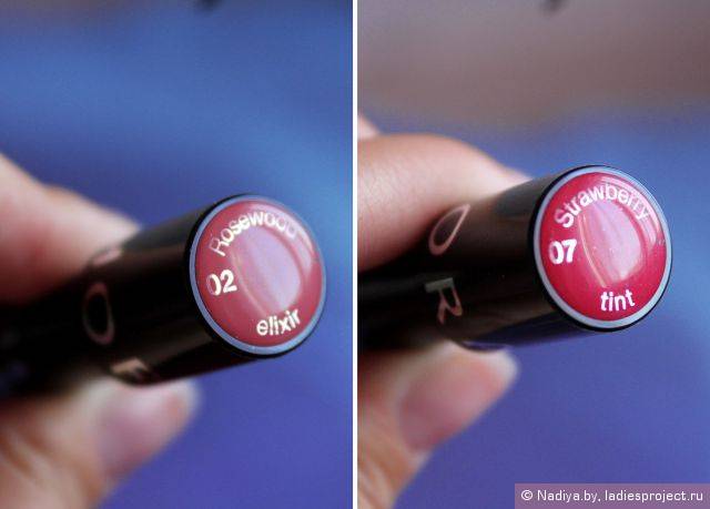 Так как в моем городе (да и во всей Германии) Сефоры нет, то мне нужно было выбрать сразу 2 универсальных оттенка – естественный нюд и яркий околокрасный. Так выбор пал на оттенки 02 Rosewood elixir и 07 Strawberry tint.