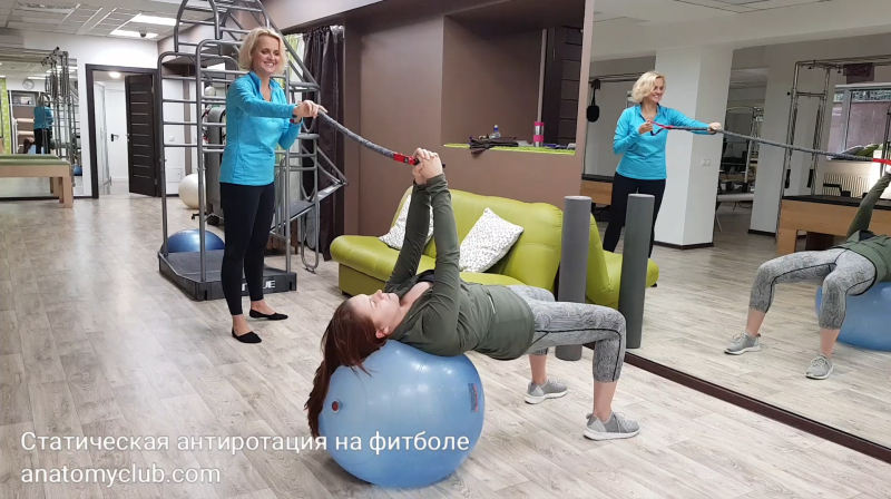 5. ТРЕНИРОВКА СТАТИЧЕСКОЙ АНТИРОТАЦИИ / Фитбол в горизонтальном положении