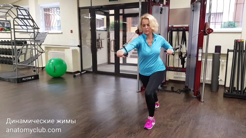 - После выполнения 10-15 повторений встаньте к тренажеру другим боком и повторите.