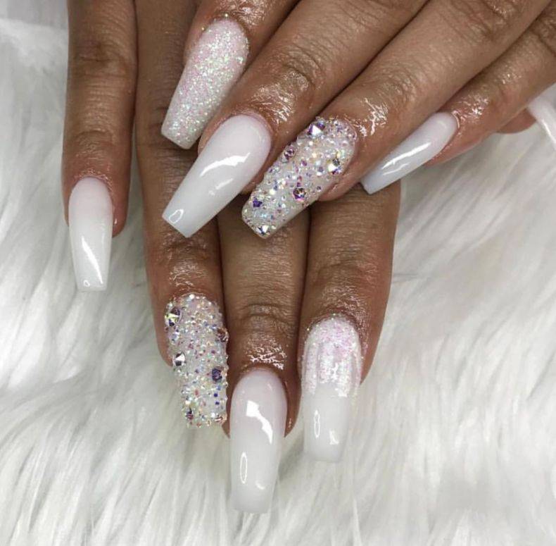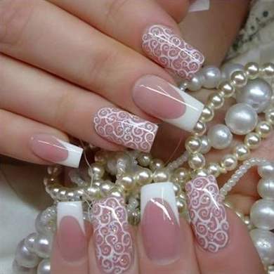 Наибольшее распространение пудра получила в свадебном маникюре. Французский маникюр является в данном случае классическим вариантом, но в последнее время невесты все чаще склоняются к более оригинальному дизайну, характерному для маникюра с акриловой пудрой. Различные рельефные фигурки вроде цветов создаются на ногтях также с помощью акрила, и именно их будущие жены предпочитают видеть на своих ногтях во время свадебной церемонии. Естественно, в белых или розовых оттенках.
