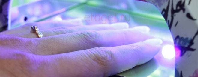 После этого осуществляется просушка с помощью специальной лампы на протяжение 2-3 минут.