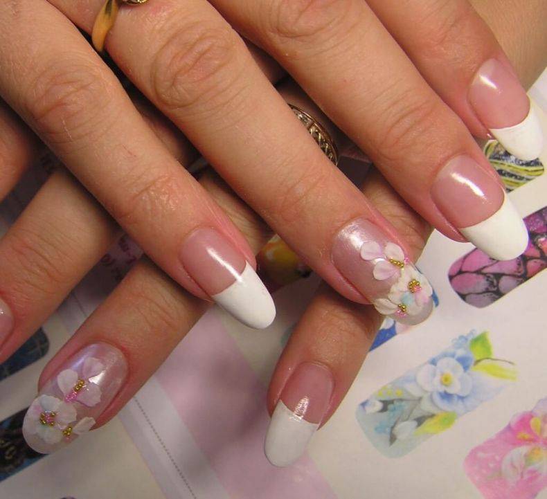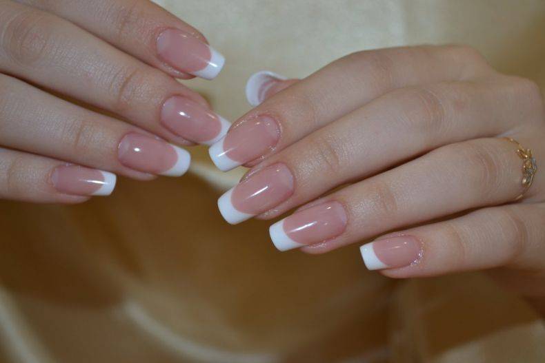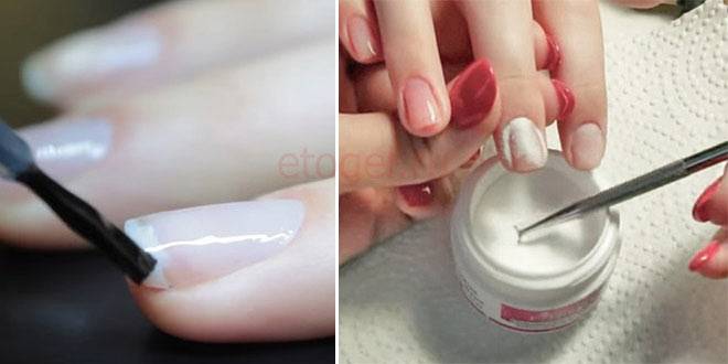 Кстати, это отличный способ не только укрепить ногтевую пластину, но и сделать великолепный френч, для которого достаточно запастись белой (для кончика ногтя) и розовой (для основной части ногтя) пудрой.