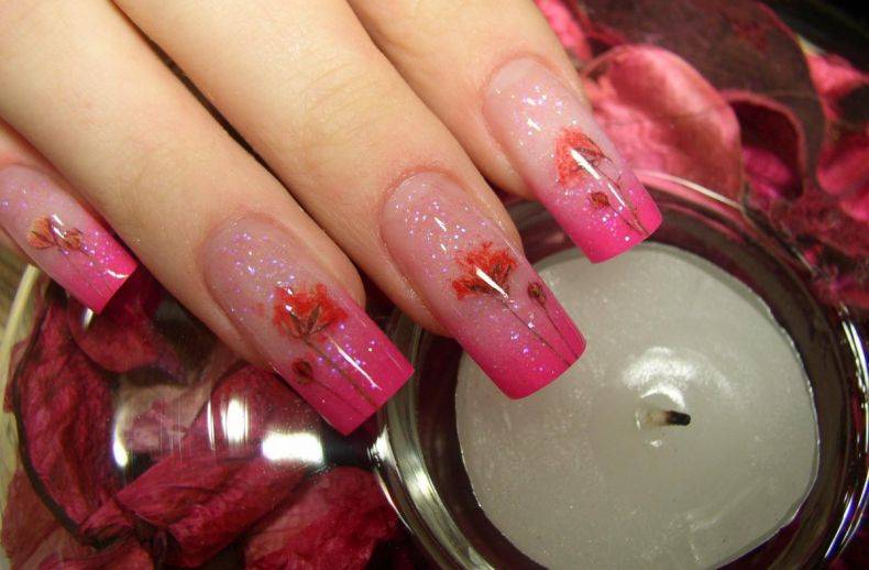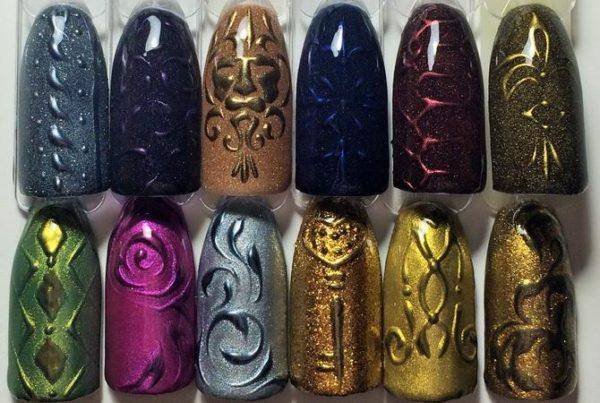 После внедрения акрила в косметическую сферу акриловая пудра стала широко применяться для дизайна ногтей. В отличие от лаков, которые быстро расплываются, пудра способна создать четкий рельефный рисунок, который оригинально смотрится на ногтевой пластине. С помощью пудры можно даже создавать на ногтях миниатюрные орнаменты – все зависит от толщины используемой кисточки.