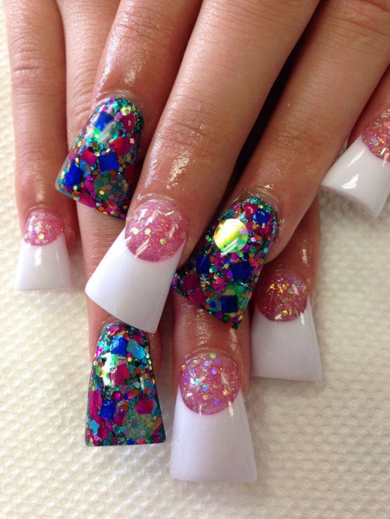 Красивый маникюр с цветной акриловой пудрой