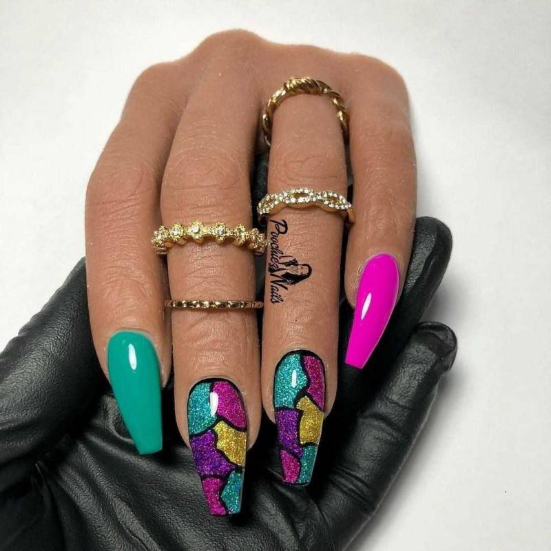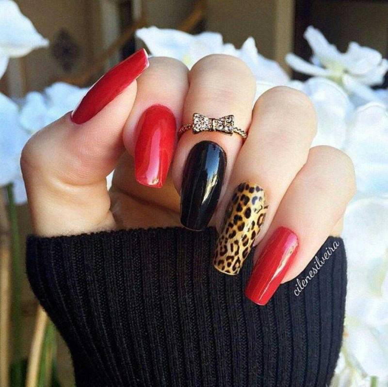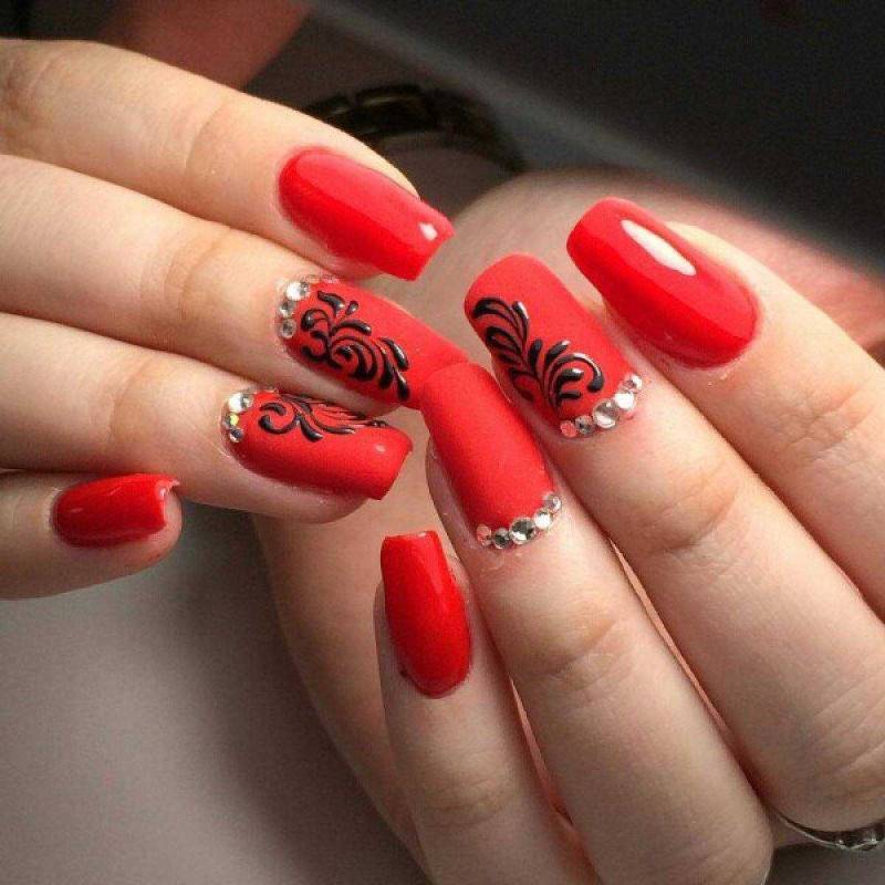 Цветная поталь на ногтях: розовая, красная, бордовая, черная, синяя
