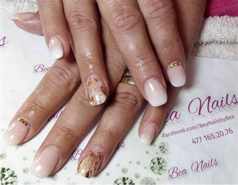 Золотая фольга отлично перекликается и сверкает на белом или же молочном лаке. Чтобы создать стильный дизайн потребуется выбрать молочный и белоснежный гель-лак с липким финишем. Закрасьте одну часть ногтевой пластины белый, а другую молочным гель-лаком. Старайтесь, чтобы границы были ровными и равномерно прокрашенными.