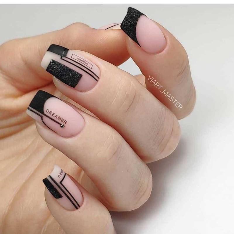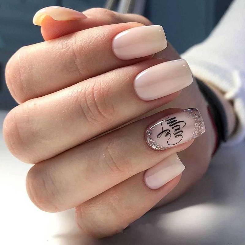 Модным направлением 2021 года являются надписи. Девизы, признания в любви, клятвы, обещания, имена, отдельные слова и буквы выглядят особенно стильно на недлинных ногтях.