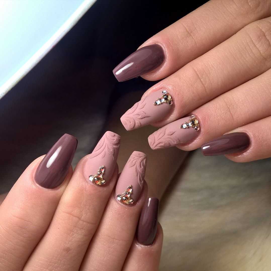 - Текстурированные ногти также в тренде — с использованием сусального золота, блестящих текстур или матовой отделки. Можем использовать камни или другие украшения для достижения 3D-эффекта.