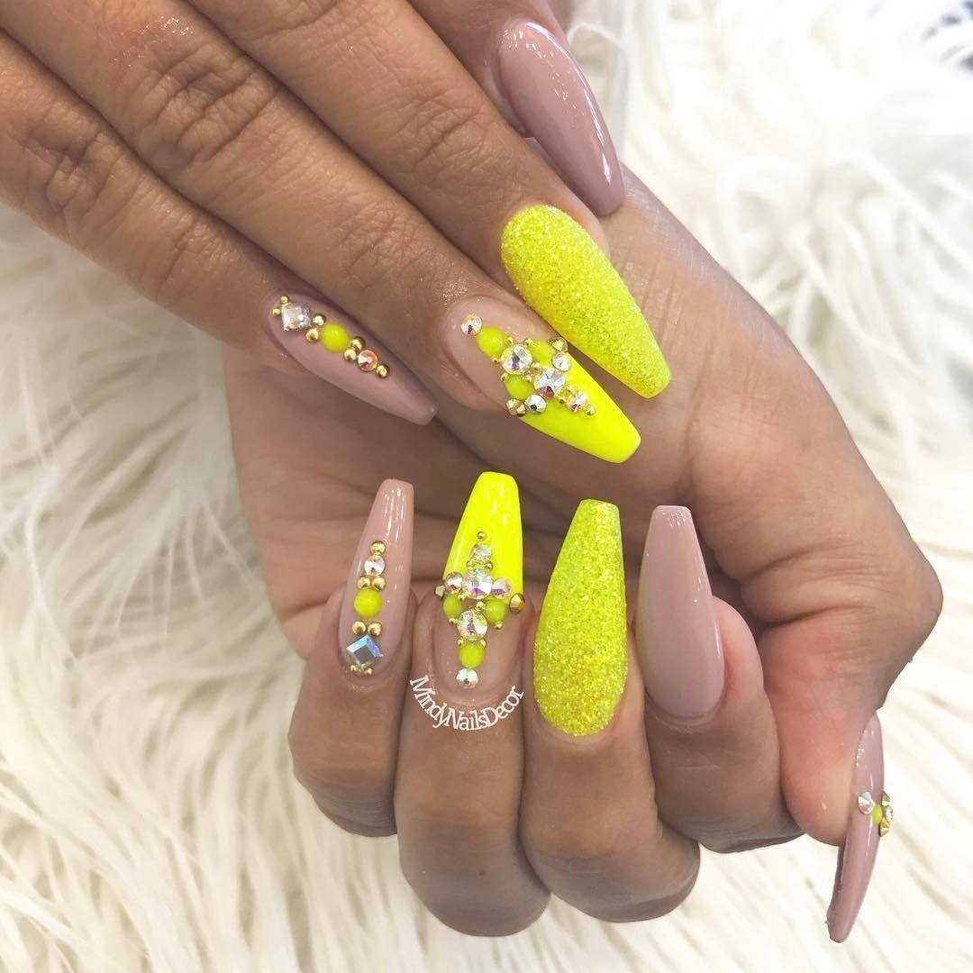 Такой маникюр выглядит солнечно и по весеннему ярко: