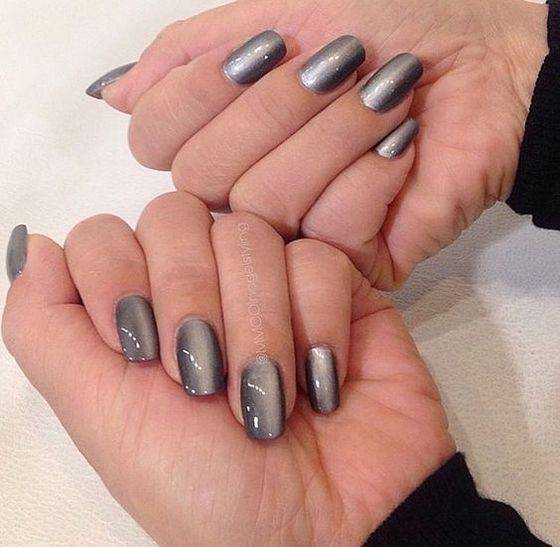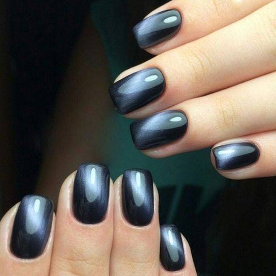 Руки с таким маникюром не могут не привлечь внимание. Дизайн с втиркой можно дополнить глиттером, фольгой, очаровательными принтами. Зеркальная втирка: