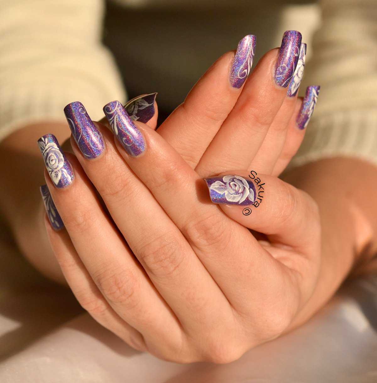 Любое необычное покрытие и вариации с лаком для самого стемпинга позволяют создавать самые сложные нейл-дизайны.