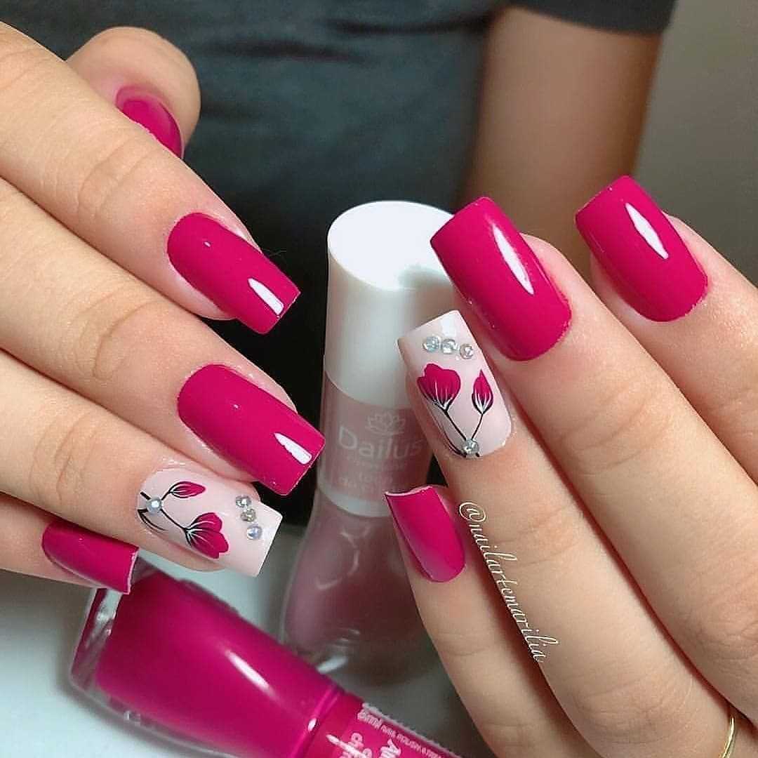 Цветная поталь на ногтях: розовая, красная, бордовая, черная, синяя