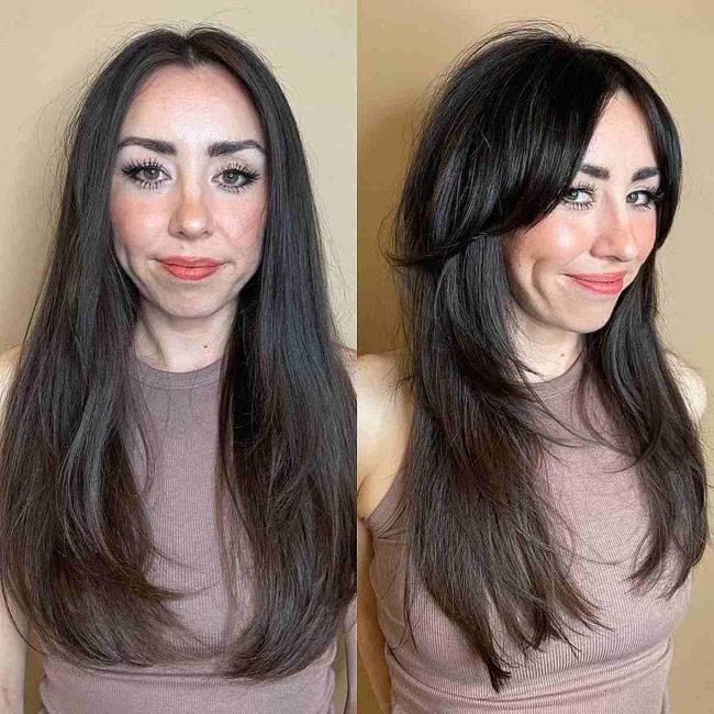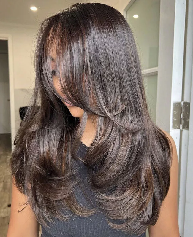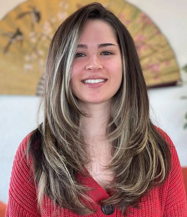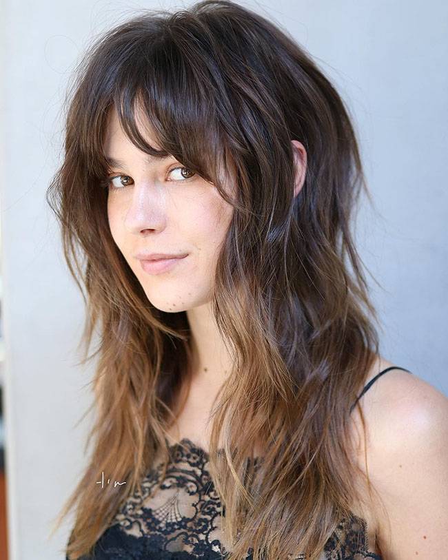 Слоистая стрижка придает объем длинным волосам и обеспечивает гибкость при укладке. Попросите парикмахера сделать длинные слои сзади и гладкие, градуированные слои для обрамления лица. Вы можете сбалансировать слои с помощью длинной челки, которую можно уложить как набок, так и прямо. С каскадной стрижкой хорошо смотрятся асимметричные челки.