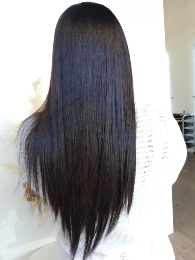 Затем волосы аккуратно расчесывают и при необходимости подравнивают кончики.