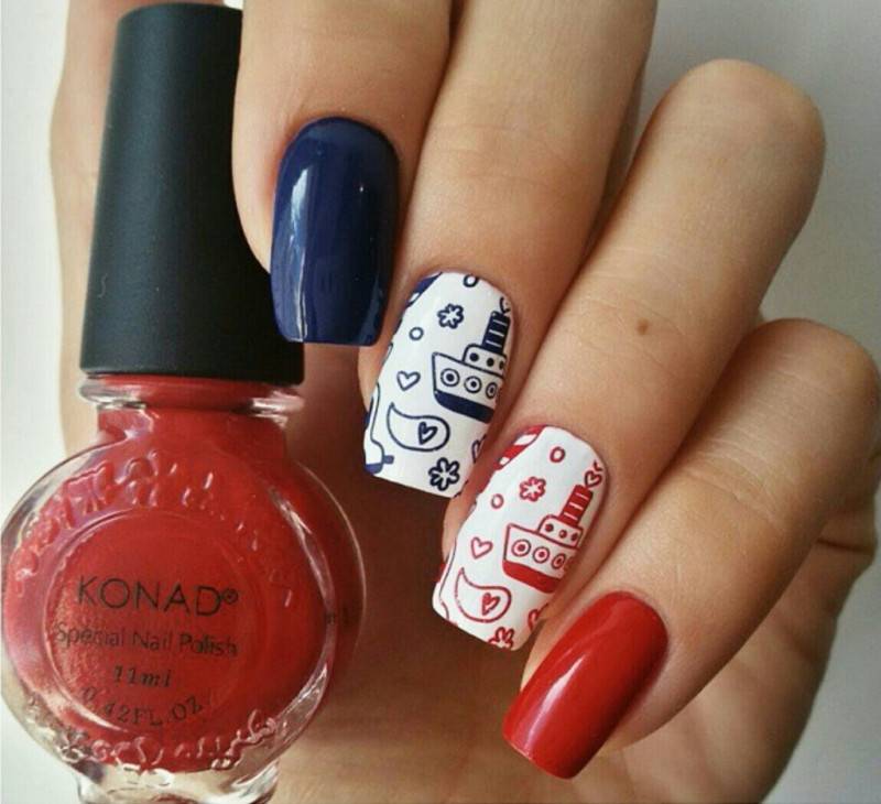Производитель Конад выпускает несколько вариантов акриловых лаков для создания стемпинг-рисунка на ногтях: в объеме 5, 11 и 12 мл. В ассортименте представлены разнообразные варианты покрытия: перламутровые, матовые, прозрачные, глянцевые в разных оттенках. Есть возможность приобрести и остальные необходимые инструменты для дизайна ногтей у этого производителя, только при таком условии он гарантирует получение идеального рисунка.