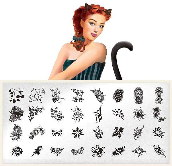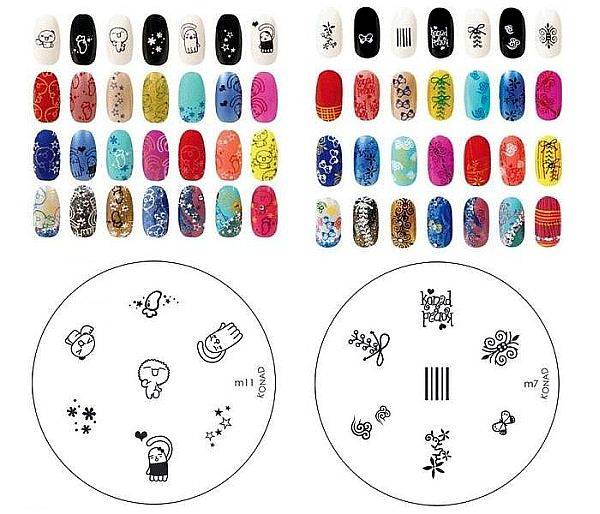 - Пластины для стемпинга (клише). Они продаются наборами, разной тематики, например: французская тема, японская, праздничная, хипстерская, морская, байкерская, что позволяет вам всегда выглядеть по-новому, но неизменно супер новомодно!