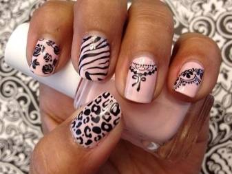 Наиболее популярен анималистический маникюр, в котором используется стемпинг, как на видео. С помощью него отлично получается нанести простейший узор «леопард», который можно усложнить и дополнить, используя дот, тонкую кисточку или зубочистку. Это же касается узора «зебра» и иных, таких, которые равномерно распределяются по пластине.