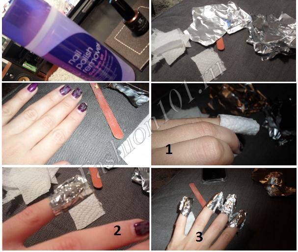 Для удобства предоставляем поэтапную фото инструкцию, на которой показано, как самостоятельно снять шеллак.