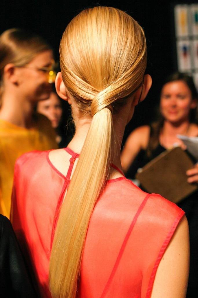 - Соберите волосы в хвост на затылке.