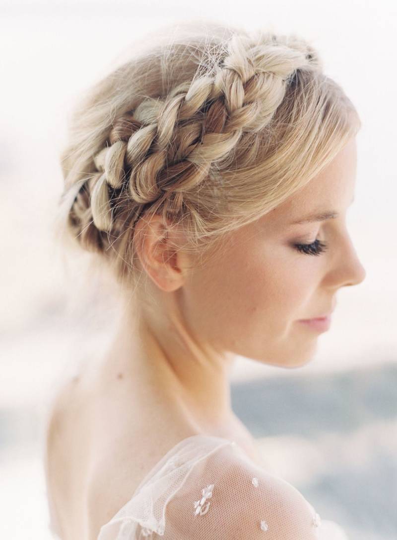 Сделайте обычную косичку на одной или обеих сторонах головы, начиная от линии роста волос на лбу и продолжая до кончиков волос. Затем перекрестите концы косички на макушке головы и закрепите их заколками или резинкой. Этот стиль придает объем волосам и создает впечатление венка из плетеных волос.