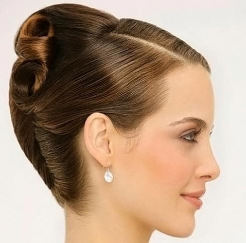 - Волосы, которые вы отделили возле челки, немного подчешите и накройте ими гульку.
